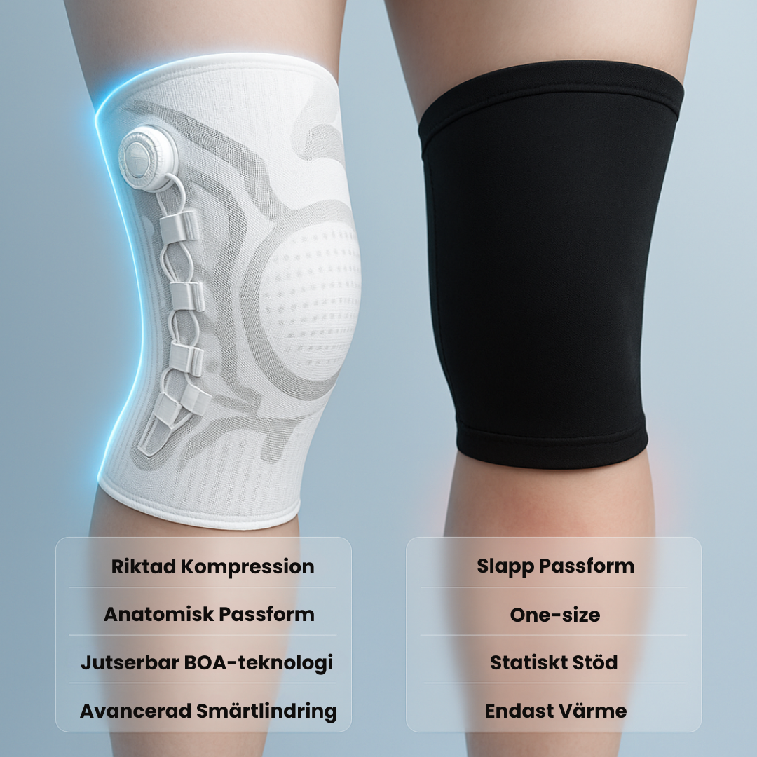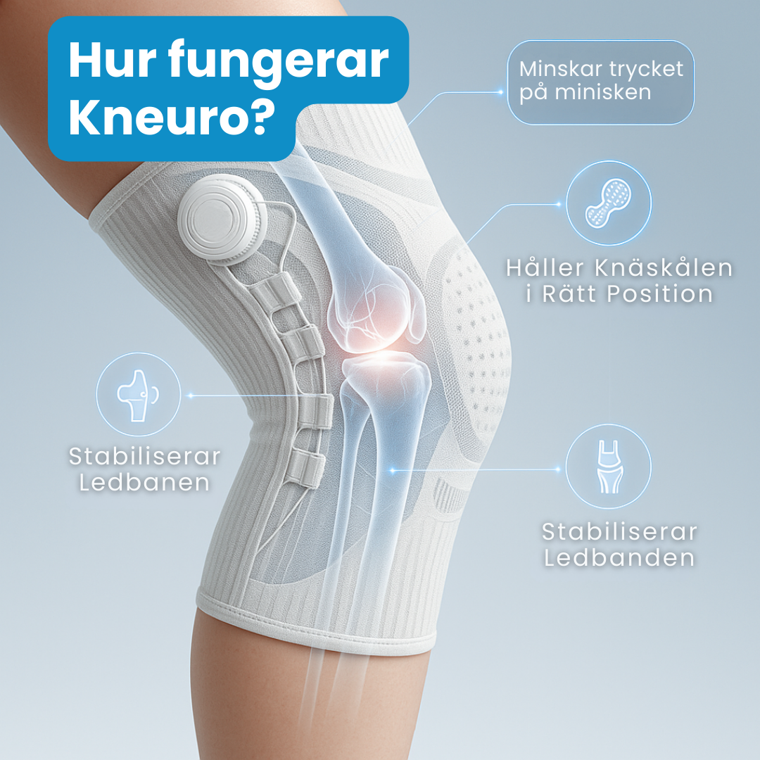 Med Kneuro™ får du stabilitet, kompression och stöd precis där det behövs – så att du kan springa, gå och träna smärtfritt igen.