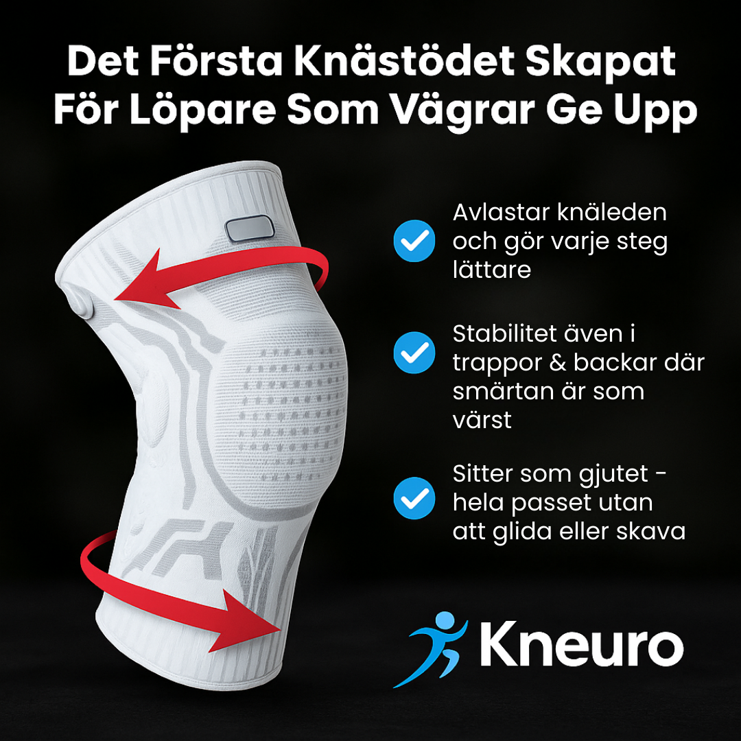 Upptäck en ny era av smärtfri löpning med Kneuro™ – ett stöd utvecklat för löpare som kämpar med knäsmärta.